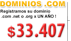 Registramos su dominio Internacional .com, .net, o .org por 1 AÑO x sólo $ 33.407 (Pesos argentinos). Ejemplo: www.suempresa.com |